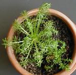 花に甘いりんごのような香りを出します。 カモミールはジャーマン種とローマン種があり、 前者は一年草で後者は多年草です。 また、この花は病気になっている花の横に 植えるとその花を元気にしてくれるそうです。 また、プチガーデンのカモミールはジャーマン種 のようです。 |