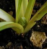 非常に見にくいのですが、真ん中に小さな芽が出て います。なかなか大きく なりません。 (12/5) |